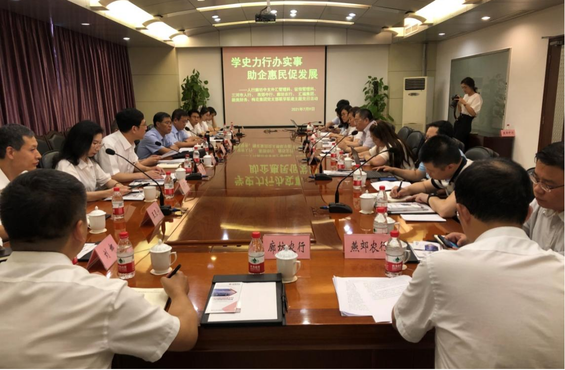 2021年7月9日,三河汇福粮油集团有限公司与人行廊坊中支外汇管理科、征信管理科、三河市人行、燕郊中行、廊坊农行、新奥财务、梅花集团党支部开展联学共建,以党建带创建、以创建促党建活动。